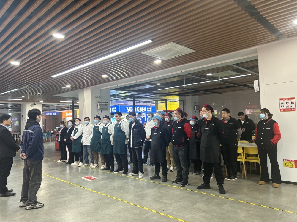 理论培训结束后,参训人员在食堂后厨进行了实地演练,模拟燃气泄漏、火情初起等突发场景,学习使用检测仪排查漏点、关闭总阀及规范使用灭火器材等操作。通过分组演练,参训人员掌握了应急处置要点,实现了理论与实践的无缝衔接。
