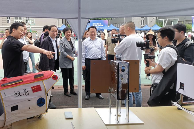 启动仪式结束后,与会代表共同参观了“智改数转”职业技能教学场景展示、技能传承中华优秀传统文化展示及全市职业学校学生社团活动展演,全市20多所中高职院校,围绕活动主题搭建了各具特色的展区。江南网页版带来了“南京号”暨中国青少年科普卫星(八一08星)地面模拟星、“蛟龙”号秦淮花灯以及众多体现了数字化设计与制造的创客作品。