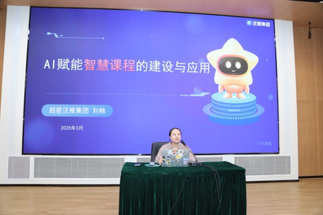3 月 18 日下午,学校在乐学楼102举办了一场意义非凡的主题教研活动,活动由教务处处长陈云霞主持,邀请了超星集团高级培训师刘楠为大家带来题为“AI赋能智慧课程的建设与应用”的报告。学校副校长刁爱军、共建单位——宝塔中心小学五位领导和我校教师一起参加了本次教研活动。