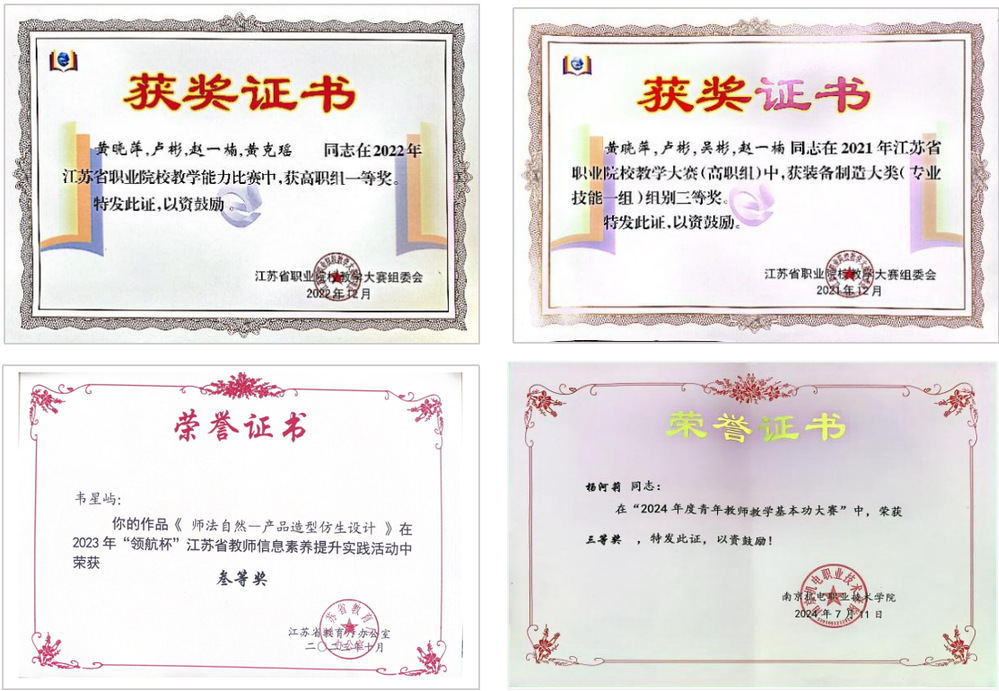 工业设计专业教师致力于“三教”改革,积极参加各类教学比赛和教学改革研究,提升教学水平和专业素养。近两年,专业教师在江苏省教学能力大赛和省微课比赛中屡次获奖,成功获批江苏省十四五规划教材。在科研方面,发表了20余篇高质量论文,获得了30余项专利授权,主持了多项纵横向课题。