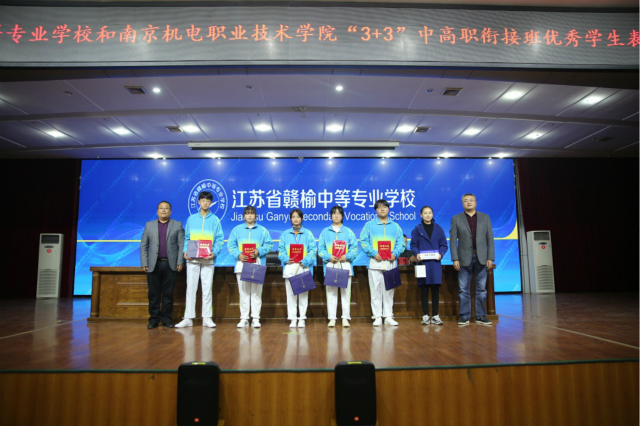 随后,双方校领导共同出席两校江苏省现代职教体系“3+3”项目学生表彰大会,为合作项目班级授予班牌,并向在现代职教体系“3+3”项目过程学习期间,综合表现优异的学生颁发荣誉证书和奖品。刁院长鼓励同学们在中职阶段做好知识储备,学好技能、提升素质、全面发展,为今后高职阶段的学习打好基础。