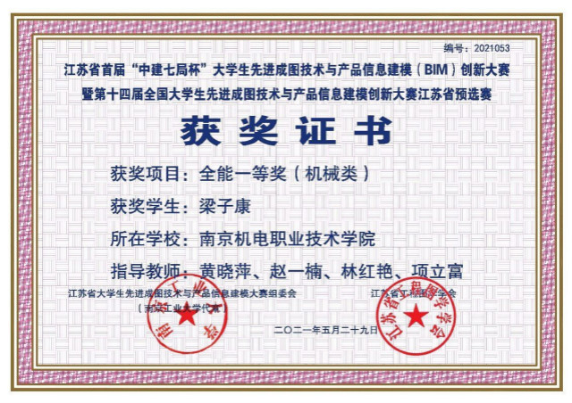 在已过去的第十四届全国大学生先进成图技术产品信息建模创新大赛江苏省预选赛中,机械系派出了以黄晓萍主任为领队的12人团队,分别参加了团队赛和个人赛,最终我们在团体赛获得了机械类团体三等奖,在个人赛中获得全能一等奖1人次,全能二等奖4人次,全能三等奖2人次。