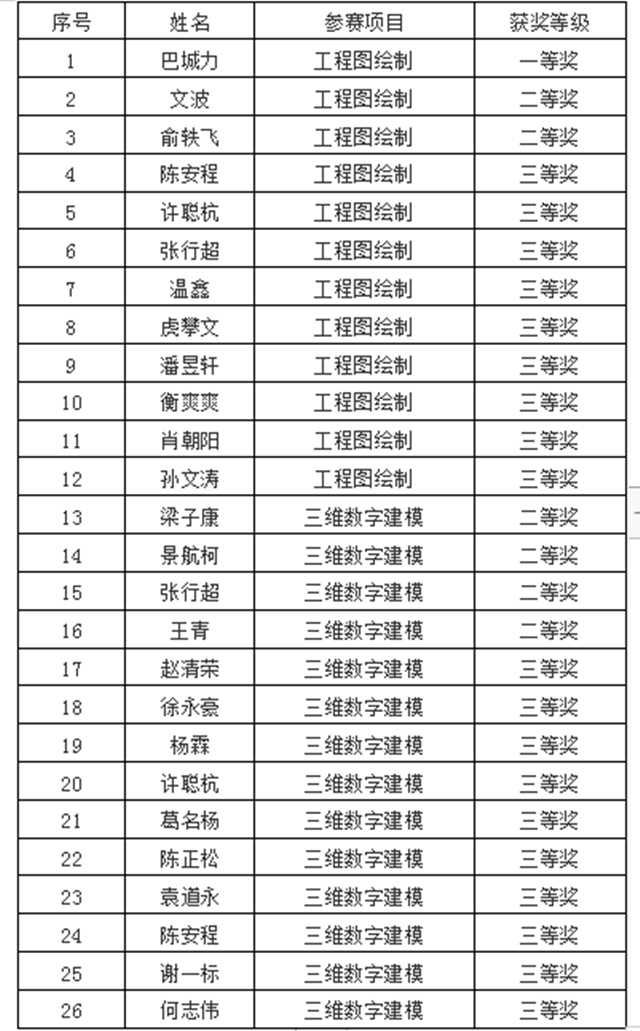 我院机械工程系参赛学生分别获得工程图绘制(机械类)团体二等奖1项;三维数字建模(机械类)团体二等奖1项;工程图绘制(机械类)个人赛一等奖1项、二等奖2项、三等奖9项;三维数字建模(机械类)个人赛二等奖4项、三等奖10项。