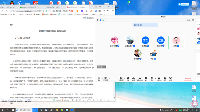 活动伊始,由连碧华老师组织教研室教师共同学习教育部 财政部关于实施职业院校教师素质提高计划(2021-2025)之“职业院校教师素质提高计划指导方案”,了解“三教”改革对师资队伍在课程实施能力、信息技术应用能力等方面的要求以及教育部 财政部关于提高职业院校教师素质的方针政策和采取的措施等,通过学习,帮助团队教师确立目标,明确自己肩负的任务和努力的方向。