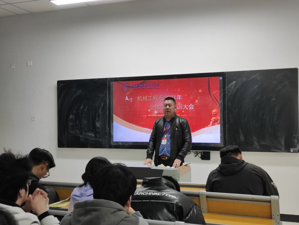 为进一步增强学生干部思想政治教育,树立远大理想、担当时代责任,增强学生干部自我教育、自我管理、自我服务意识,提高我系学生干部的综合素质,机械工程系2021年全体学干培训大会于2021年11月23日下午五点在思学楼教室开展。本次学干培训大会主讲人为机械工程系党支部副书记李杰。学生会指导老师、各部长、主席及各班班长、团支书均等参加了本次培训。