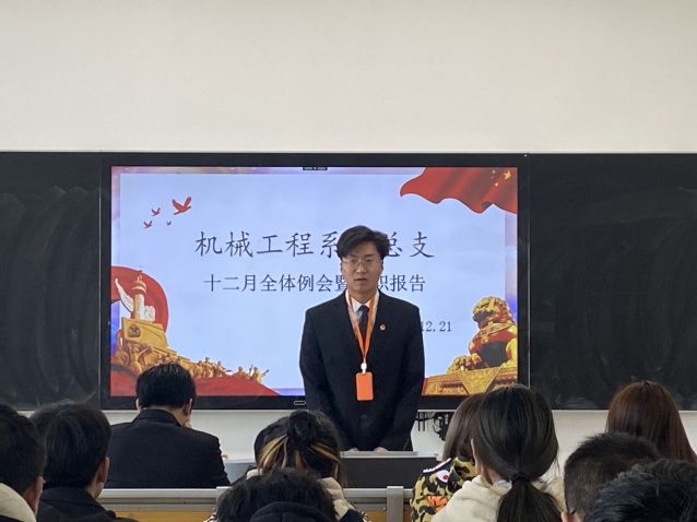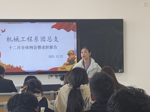 机械工程系团总支2021-2022学年第一学期的各项工作已经逐渐步入尾声,为了更好地考察和了解机械工程系团总支各部门今年所做的各项工作,提高自我总结和自我反思的能力,机械工程系团总支书记沈婷婷的统筹布置下,于12月21日在学院思学楼203开展机械工程系团总支十二月份全体例会暨“双述双评”工作。