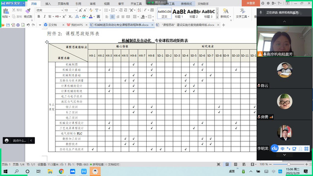为贯彻落实《江南网页版“课程思政”建设实施方案(2021年-2023年)》、更好地推进课程思政建设,2022年3月29日下午,机械制造及自动化教研室全体成员通过腾讯会议召开了主题为“课程思政建设研讨”的教研活动,旨在讨论专业课程思政元素、完善专业课程思政矩阵表,本次会议由陆晨芳老师主持。