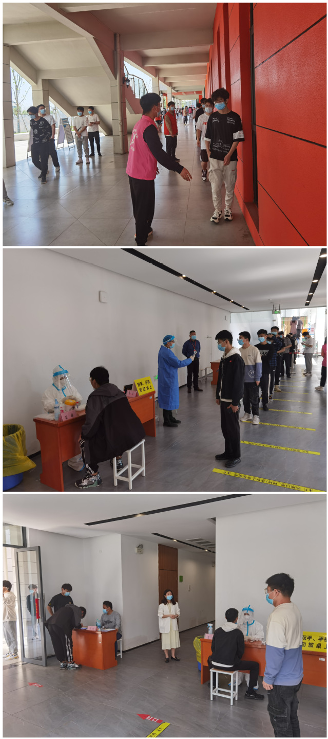为筑牢疫情防控坚固防线,确保学生在校工作平稳有序,4月5日和8日,我校组织全体师生员工分批在校进行核酸检测,坚决筑牢校园防疫安全墙。