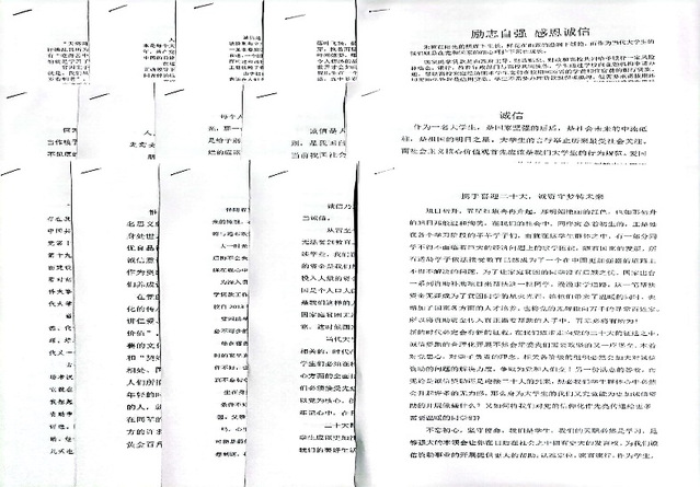 资助诚信教育主题月期间,各班级积极响应,举办了精彩纷呈、形式多样的教育活动。其中征文活动启动后,全系共计收到三十篇征文,经班级推荐、系部初赛,最终评选出优秀征文六篇。