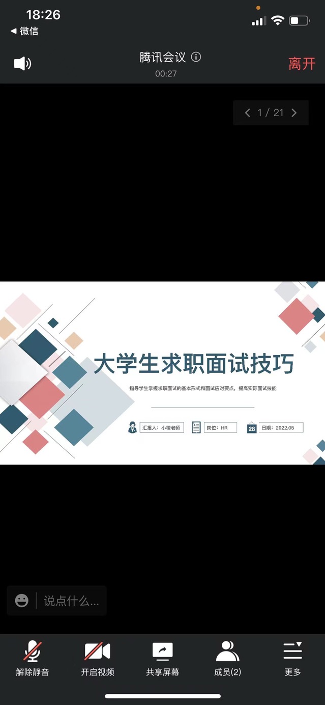 为帮助学生更好的掌握面试技巧,注重求职礼仪,有效提升学生求职面试的成功率,5月22日晚7点,机械工程系举行了大学生求职面试技巧专题讲座。本次讲座由中船重工鹏力(南京)智能装备系统有限公司人力资源部檀仔维老师主讲,20级、21级学生在线参加了讲座。