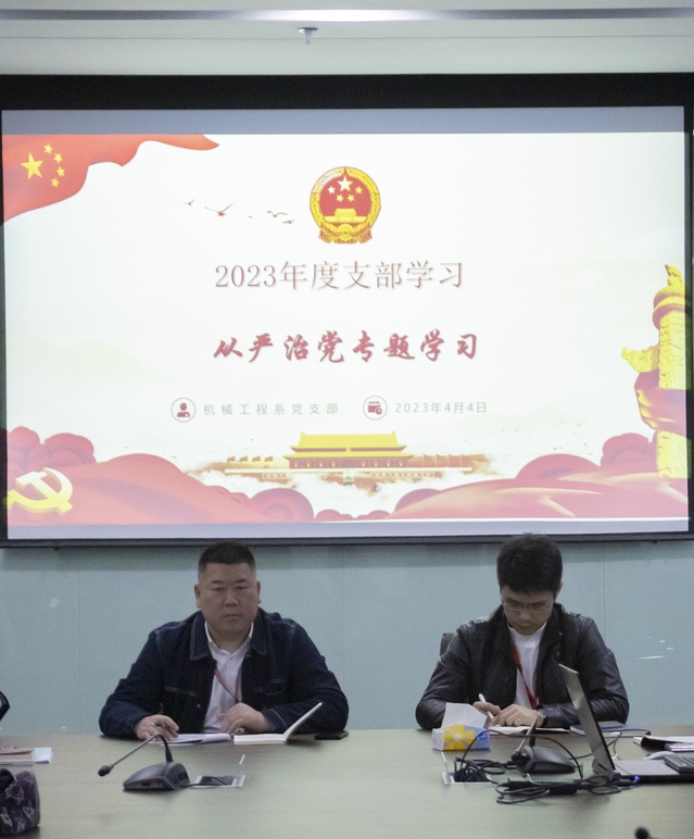 4月4日下午3:00,机械工程系党支部在育德楼203会议室开展全面从严治党暨党风廉政建设专题政治学习,本次学习由系党支部书记李杰作为主讲人,所有党员参会。