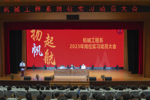 为切实推进2021级学生岗位实习工作有序开展,5月8日中午12:45分,机械工程系在学院报告厅组织召开了21级学生岗位实习动员大会。机械工程系主任毛奇、党支部书记李杰、副主任黄晓萍、21级各班辅导员以及2021级全体学生出席了此次大会。本次大会由机械工程系就业干事顾航主持。