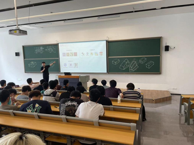 刘子奇主管从工业设计专业毕业后的就业路径出发引出话题,结合自身丰富的工作经验,通过设计类工作就业路径、产品研发流程、工业设计流程、工业设计技能需求等方面,为在场的师生介绍了工业设计专业目前的就业方向和企业需求,让同学们对将来专业学习的重点内容和就业方向有更多的了解和思考。