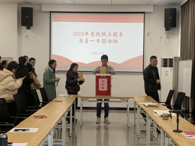 为深入贯彻落实党的二十大精神,弘扬中华民族扶危济困、助人为乐的传统美德,贯彻以人为本的理念,机械工程系党支部积极响应上级党委要求于2024年1月12日在笃行楼401开展“慈善一日捐·济困送温暖”的爱心主题活动。