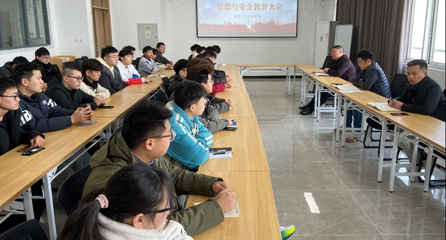 3月7日的思想与安全教育会上,毛奇谈到现场工程师项目的起点高,级别高,学校为促成项目的落实,投入了大量的人力、物力和财力,希望学员珍惜此次学习机会,做到学有所得,学有所获。随后,宣读了安全管理条例。
