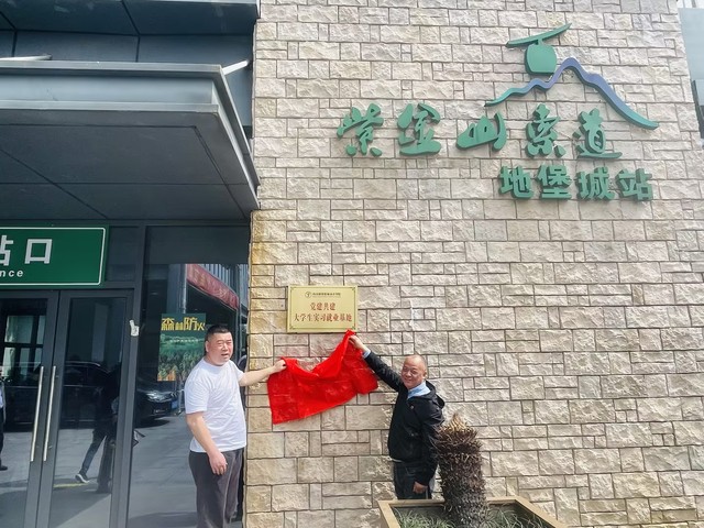 支部党员于下午1:30在紫金山脚下集中,举行了“党建共建 大学生实习就业基地”揭牌仪式,由机械工程系党支部副书记李杰和南京金旅索道旅游开发有限公司工会主席秦国兵进行揭牌。