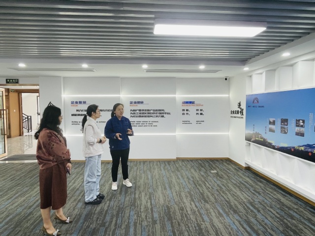 活动过程中,黄晓萍等一行在单位领导的陪同下参观了企业展厅、生产车间,了解了学生生活区域并开展座谈。双方就企业人才需求、人才培养、共建实习实训基地、企业导师、专利成果转化等问题进行深入探讨。黄晓萍表示,机械工程系现有学科领域与企业发展方向高度契合,学校与企业作为人才供应的首尾两端,校企双方在学生实习、就业、人才培养等方面具有宽阔的合作空间,合作基础厚实。