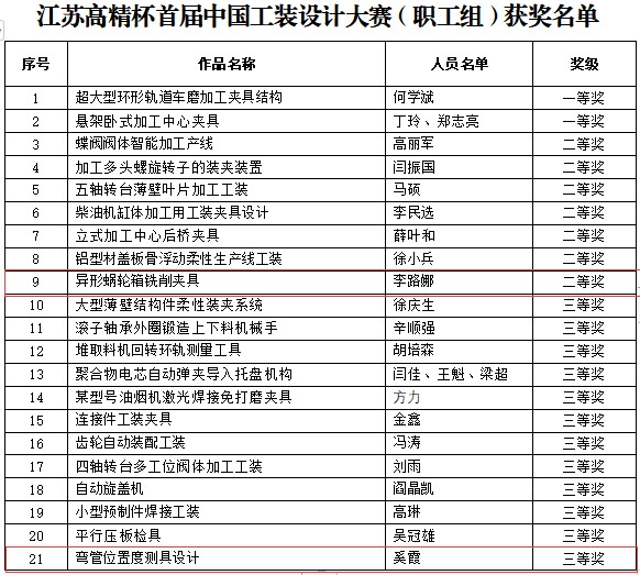 近日,由中国机电装备维修与改造技术协会主办,中机维工艺装备分会承办的“江苏高精杯”首届中国工装设计大赛历时三个月圆满结束。本次大赛行业企业和职业院校同台竞技,我系师生组队共参赛10个项目,表现突出,成绩斐然,获奖率达100%。