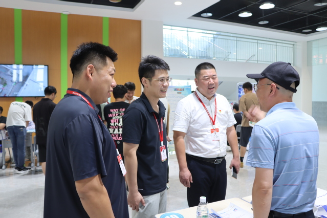在此次党日活动中,机械工程系党支部书记李杰、机械工程系主任毛奇带领系部各专业负责人和各专业团队党员教师与参加机械工程系专场招聘会的企业及面试学生进行了深入交流。