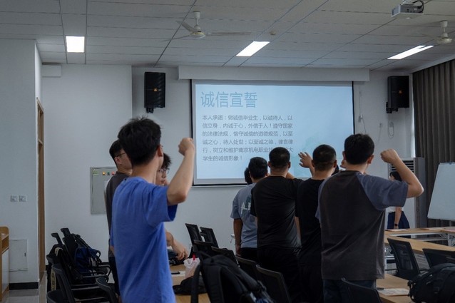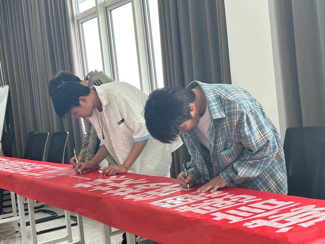 诚信是大学生立身为人和成长的必备品质。原智慧针对毕业生申请毕业确认流程、助学贷款还款、征信与违约后果等相关内容进行解读,并对学生关于征兵入伍资助政策等方面进行答疑解惑,同时,她也强调学生要增强诚信意识,做社会新青年。随后,她带领全体学生进行诚信宣誓,并在横幅上签下了自己庄严的承诺。