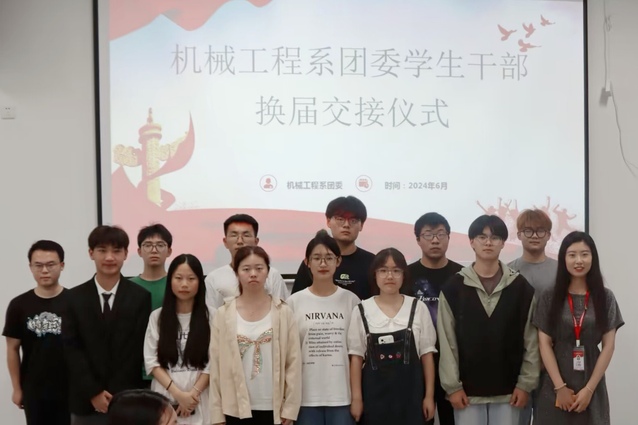 为加强新一届团委学生干部队伍的建设,充分发挥学生干部的模范带头作用。6月21日,机械工程系团委在李家喜劳模工作室举行第十六届团委学生干部换届交接仪式。仪式由机械工程系团委书记王晨歌主持,第十五届、第十六届全体学生干部参加仪式。