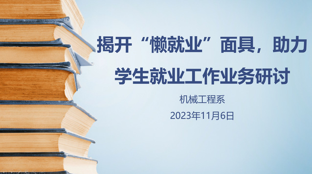 就业是每个人人生中的重要一步,它不仅是实现自我价值的重要途径,还是我们融入社会、服务社会的关键。2023年11月6日上午,在笃行楼401召开了以“揭开‘懒就业’面具,助力学生就业工作”为主题的业务研讨。本次学习由机械工程系辅导员刘丽主持,机械工程系全体辅导员参加学习。