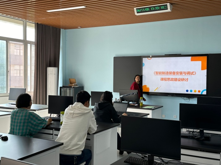 为进一步提高教师课程思政建设能力,深化课程思政教学改革,丰富专业课育人内涵。2024年11月5日智能制造装备技术教研室在笃行楼302开展《智能制造装备安装与调试》课程思政建设研讨,会议由教研室教师封金徽老师主持。