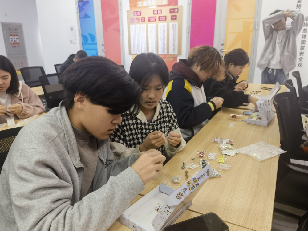 与好友知己相约相伴而来,共同完成一串专属于自己的“心语”手串,相信对于在场的每一位同学来说,都是一场特别的体验。活动在同学们的欢声笑语中圆满落下帷幕。