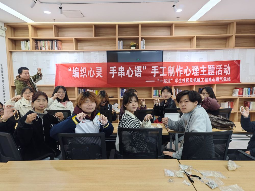 为深入贯彻实施润心行动精神,丰富同学们的校园文化生活,机械工程系心理气象站及向日葵辅导员工作室在星梦馆二楼团委活动区,于2024年11月20日中午,联合举行“编织心灵,手串心语”手工制作心理主题活动,让同学们感受DIY的乐趣。