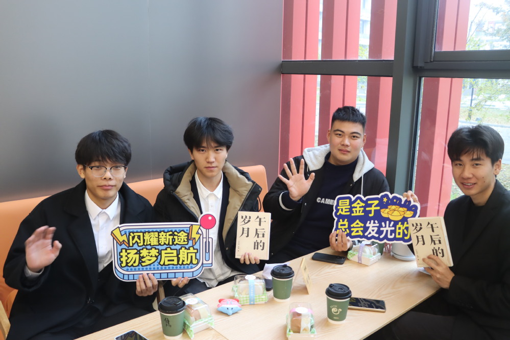 在学生分享环节,机械工程系徐瑞、徐国耀,信息工程系陈凯文、臧超同学上台,讲述了自己一个学期以来转本学习的心得体会。他们分享了在平衡日常课程与转本复习过程中遇到的挑战,以及如何克服困难、坚持不懈的学习历程。这些真实而生动的分享,引起了台下同学们的强烈共鸣,现场气氛热烈而融洽。