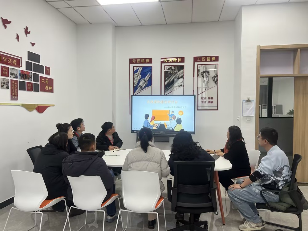 为落实立德树人、德技并修,推进教育数字化战略行动,主动适应数字教育新形势,需求牵引、应用为王,推动职业教育优质数字资源开发建设、交互应用与开放共享,创新线上线下混合式教学,促进职业教育办学模式、育人方式、教学方法和考核评价的数字化重塑,构建更加多样、更具活力的职业教育生态,提高职业教育人才培养质量。2024年12月10日下午,机械设计与制造教研室全体教师在笃行楼403李家喜劳模工作室开展在线课程建设研讨会,本次会议邀请了江苏睿越竞智信息技术有限公司项目经理荣恩元。