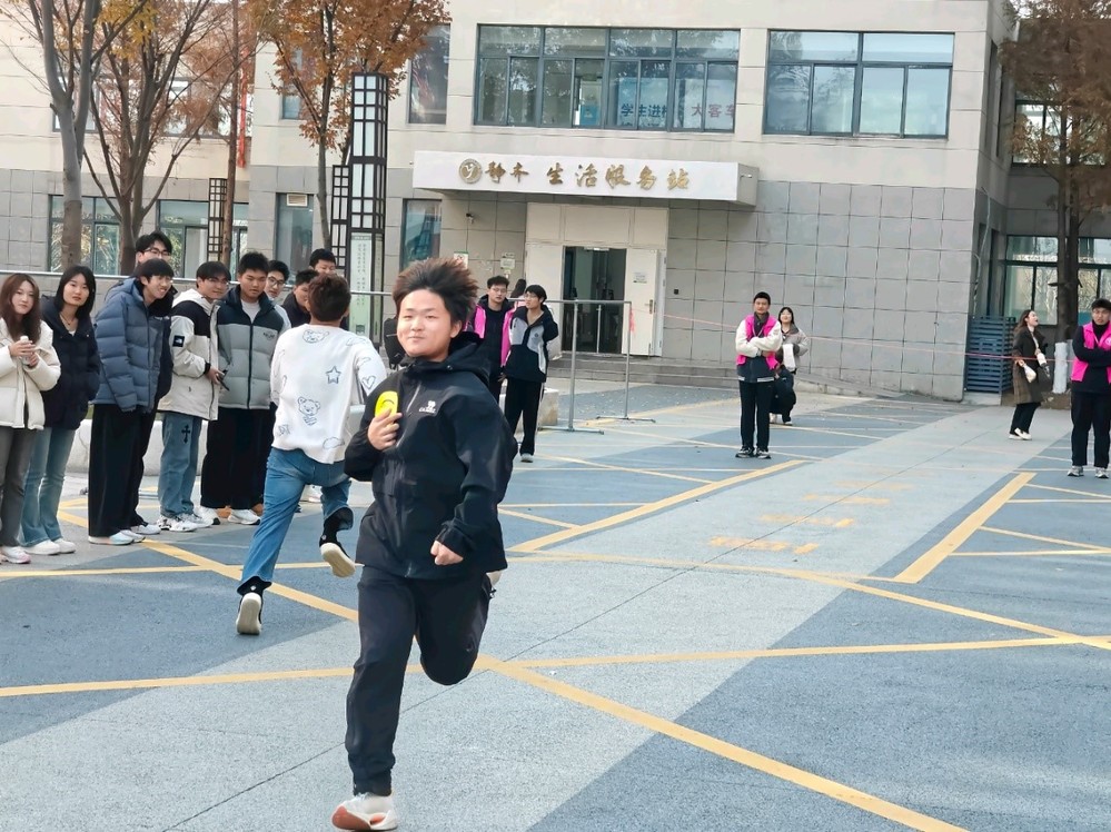 比赛开始,“微笑”成了最亮眼的接力棒。每一位选手接过“笑脸贴纸”,都以灿烂笑容感染队友与旁观者,有同学在交接时俏皮比心,有的大喊加油口号,将积极情绪传递给整个赛场。团队协作在此刻被展现得淋漓尽致,不同班级的同学相互打气,陌生与拘谨化为乌有,只剩为集体荣誉奋进的决心。