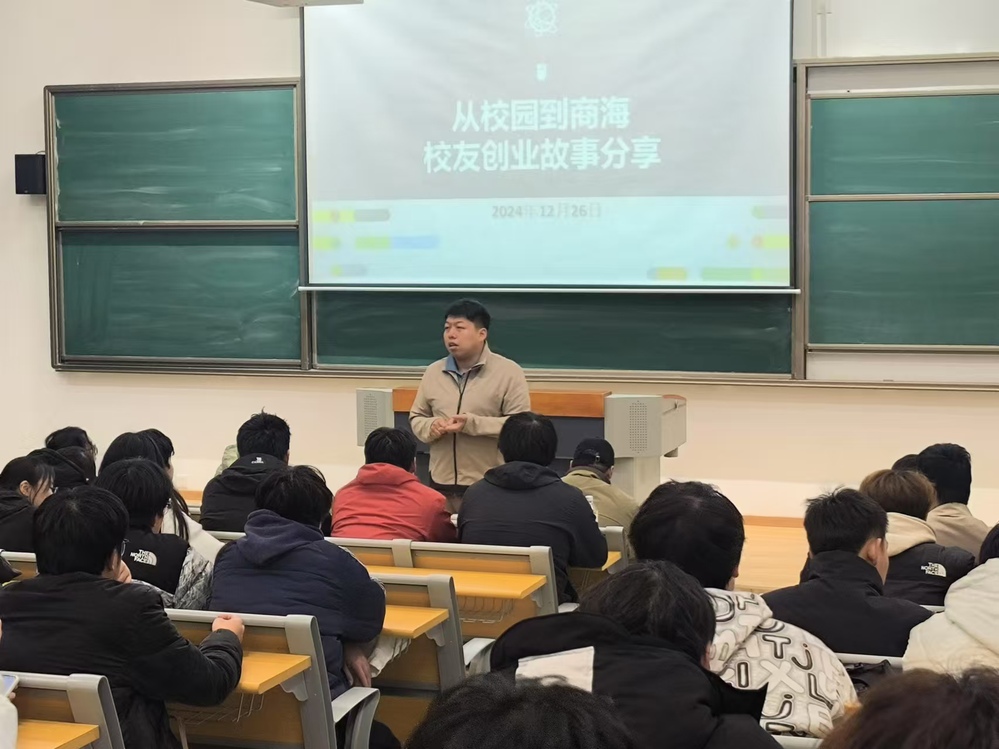 2024年12月26日,机械工程系在勤学楼105室成功举办“从校园到商海:校友创业故事分享”讲座。本次讲座由机械工程系就业干事顾航老师担任分享人,在线邀请了19级模具设计与制造专业校友殷浩玮主讲,吸引了我系大一、大二学生参加。
