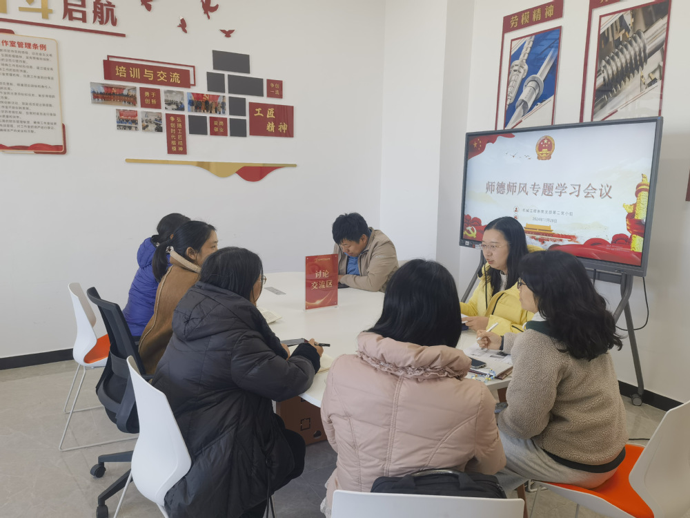 在第二党小组组长王潇然的带领下,大家学习习近平总书记关于师德师风的重要论述、师德优秀典型先进事迹汇编、师德规范及相关法律法规等文件,对文件中的要点展开积极讨论,结合自身工作,谈了自己的工作感悟和见解。