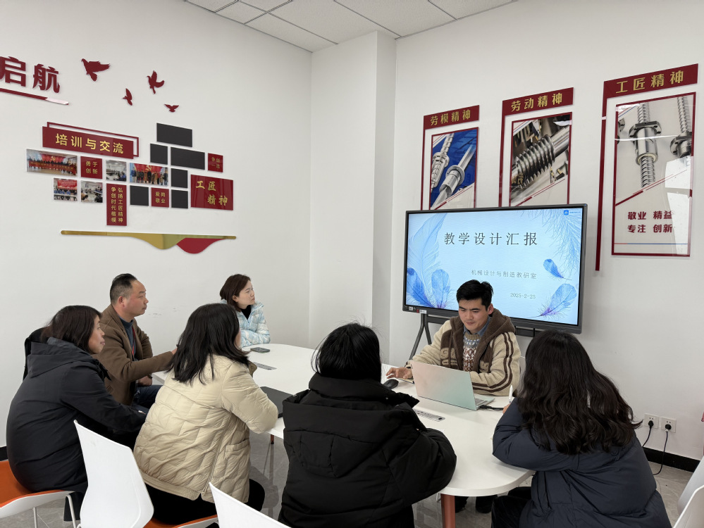 2025年2月25日下午,机械设计与制造教研室全体教师在笃行楼403李家喜劳模工作室进行了2024-2025学年第二学期教学设计汇报。教研室的每位老师根据自己本学期承担的课程都做了精心的准备,会议由教研室主任孙菁老师主持。