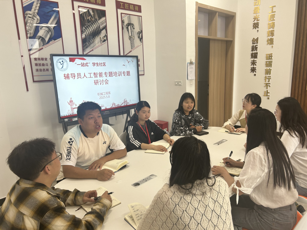 此次研讨会基于教育部5月7日举办的全国高校辅导员人工智能专题培训班成果展开。培训班聚焦“AI与教育强国建设”“智能工具赋能学生管理”等前沿议题,通过专题报告与案例交流,为辅导员队伍提供了技术赋能的实践思路。江南网页版机械工程系辅导员团队在培训中深入学习AI在学生学业预警、心理健康筛查、个性化辅导等场景的应用方法,并结合机械类专业学生特点,探讨如何利用技术提升育人实效。