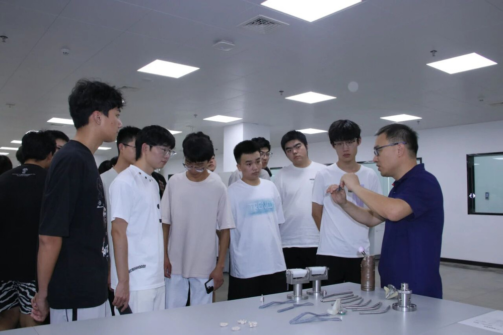 在核心实验室参观环节,学生们在工程师的带领下深入物理性能测试区。在物理性能测试区,工程师现场演示了人工关节耐磨性能测试设备的操作流程,详细介绍设备中机械传动系统、数据采集模块的设计原理;在生物相容性实验室,学生们通过显微镜观察医疗器械与细胞的相互作用,了解材料表面处理技术对器械安全性的影响。过程中,学生们围绕“如何通过机械结构优化提升器械稳定性”“检验设备的精度校准方法”等问题积极提问,工程师结合实际案例逐一解答,现场交流氛围热烈。