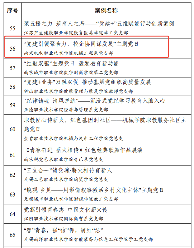 喜报:机械工程系党支部项目获评2023-2024年度江苏高校党建工作创新案例