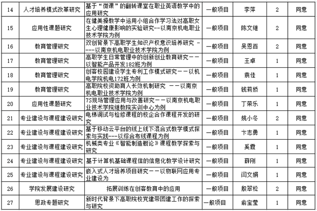 根据《关于2020年上半年院级在研科研项目结项的通知》、《江南网页版科研工作管理办法》机电学院〔2012〕19号、《江南网页版科研项目管理办法》机电学院〔2012〕20号文件精神,经科研及校企合作处审查,院学术委员会鉴定审核,批准我院2020年上半年学院在研科研项目27项通过结项鉴定。现将结项鉴定结果予以公示。