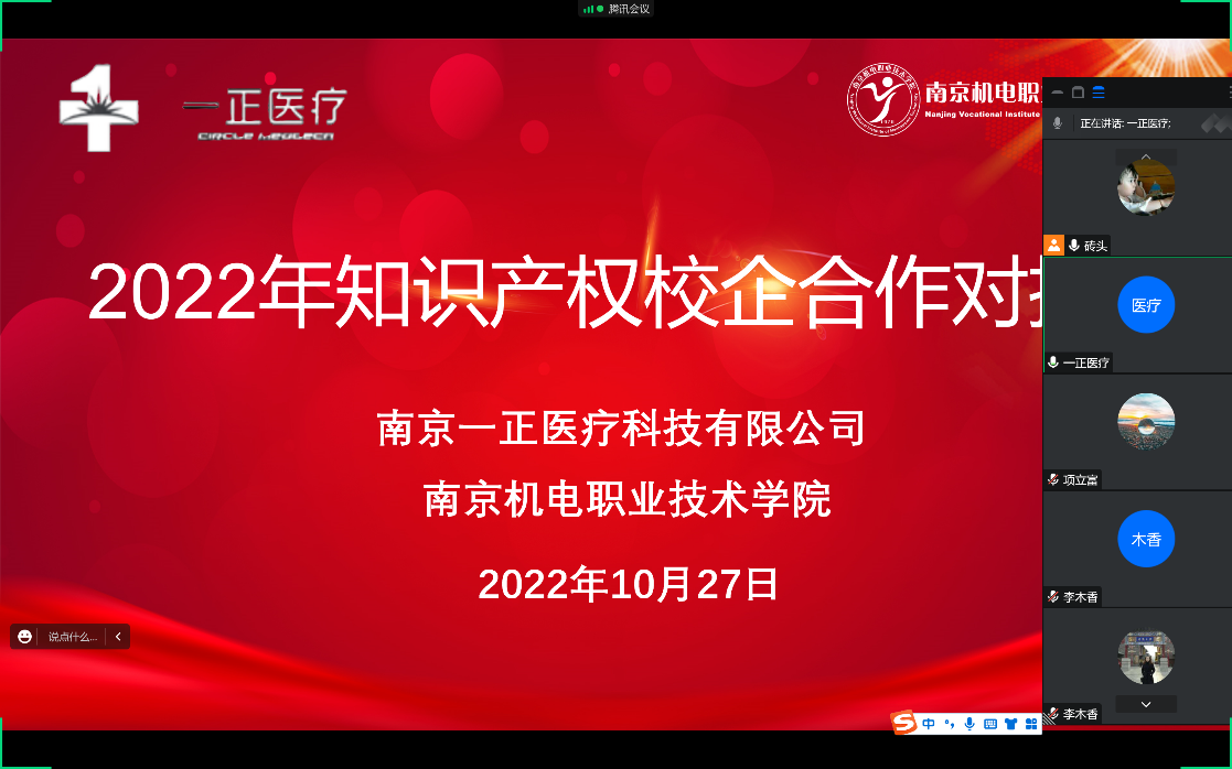 为进一步深化校企合作,服务地方经济建设,强化高素质“双师型”教师队伍建设,10月27日上午,学校科研及校企合作处与南京一正医疗科技有限公司组织开展了2022知识产权与校企合作线上交流会,深入了解企业在知识产权与实际生产中的需求,拓宽校企沟通渠道。
