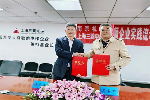 仪式上,刁爱军与王水来共同签署了“南京机电-上海三菱电梯教师企业实践流动站”校企合作协议,共同揭牌“南京机电-上海三菱电梯教师企业实践流动站”。潘理平为教师企业实践流动站的企业导师颁发了聘书。