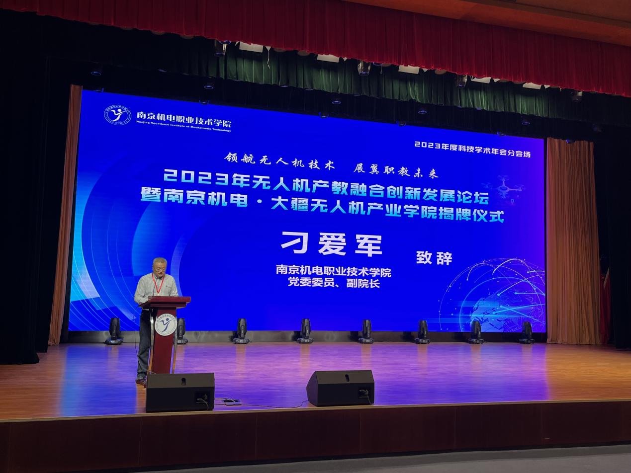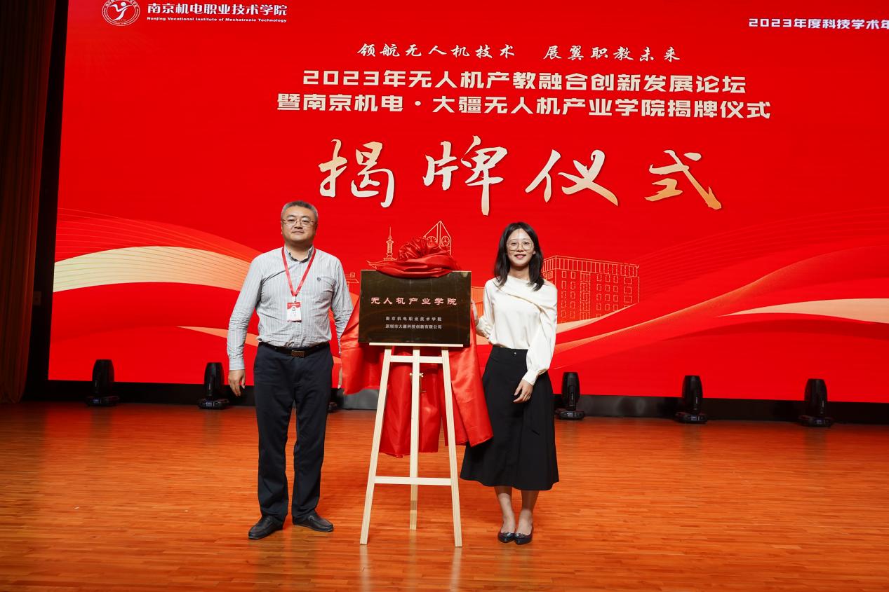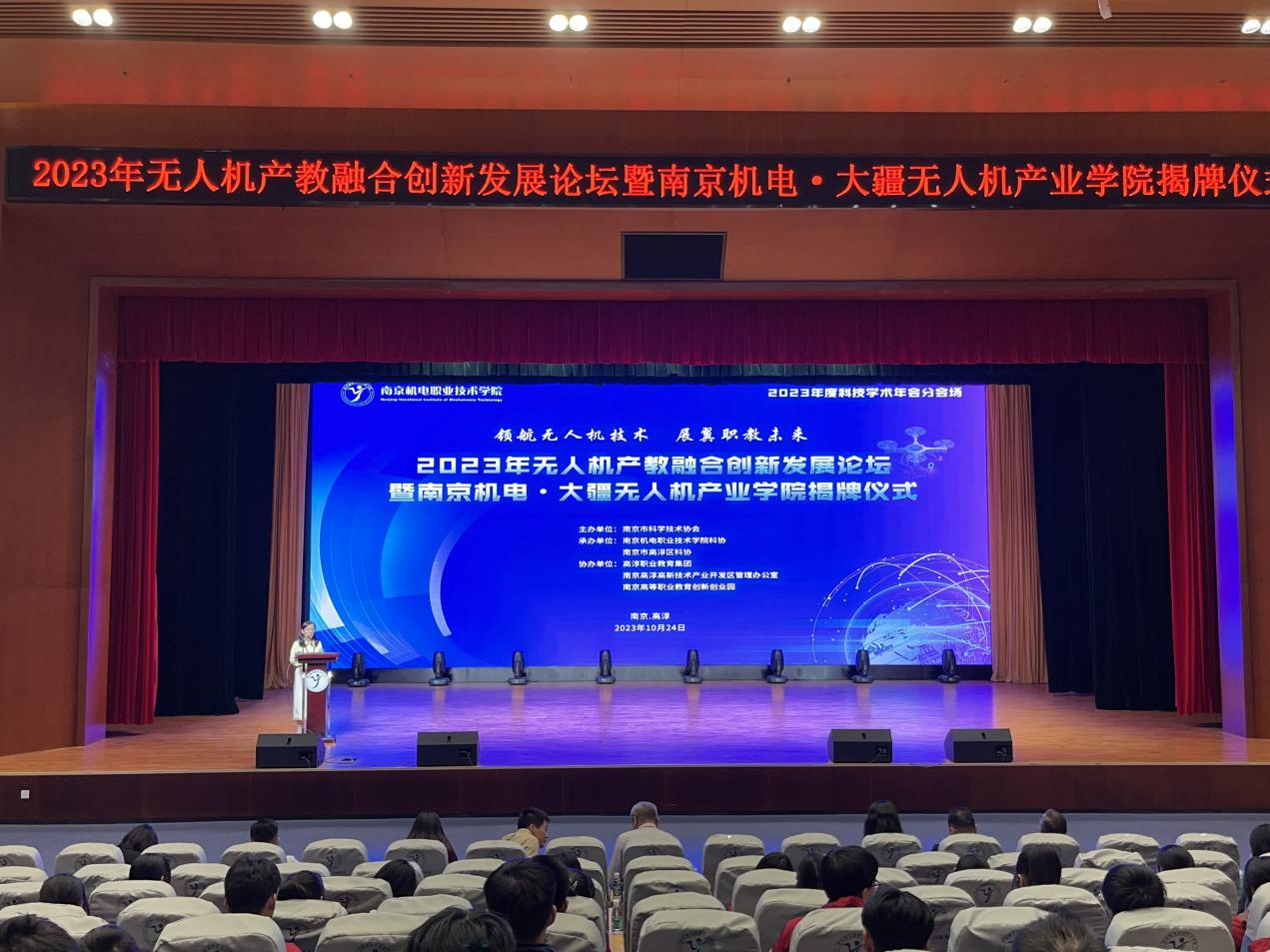 2023年10月24日下午,2023年度科技学术年会分会场——无人机产教融合创新发展论坛暨南京机电•大疆无人机产业学院揭牌仪式在学校青春剧场顺利举行。本次活动由南京市科学技术协会主办,由江南网页版科协、南京市高淳区科协承办,由高淳职业教育集团、南京高淳高新技术产业开发区管理办公室、南京高等职业教育创新创业园等共同协办。南京航空航天大学研究生院副院长郑祥明,南京航空航天大学飞行器设计专业工学博士、教授唐正飞,高淳区科学技术协会副主席杨腊斌,南京高等职业教育创新创业园党工委委员、副主任孙爱国,深圳市大疆创新科技有限公司华东区代表滕菲,南京弘谷信息科技有限公司总经理赵华君,南京弘谷信息科技有限公司副总经理顾启凌,学校党委委员、副校长刁爱军,党委委员、纪委书记、工会主席姜振宇等领导出席本次活动。本次活动由学校科研及校企合作处处长李木香主持,电子工程系全体教师及学生代表,高淳职业教育集团理事单位江苏省高淳中等专业学校和高淳第一中学的师生代表参加了本次活动。