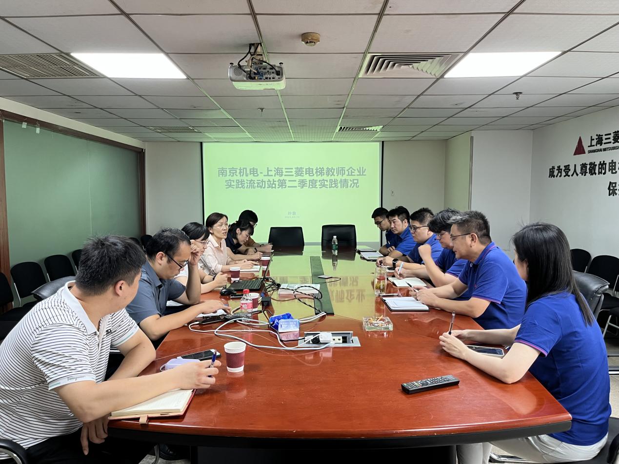 2023年9月15日,南京机电-上海三菱电梯教师企业实践流动站在上海三菱电梯有限公司江苏分公司开展第二季度复盘活动,上海三菱电梯有限公司江苏地区维保总监蒋继荣,江苏地区人事主管张愉,科研与校企合作处处长李木香、自动化工程系主任顾晟吉及进站教师参加本次活动。