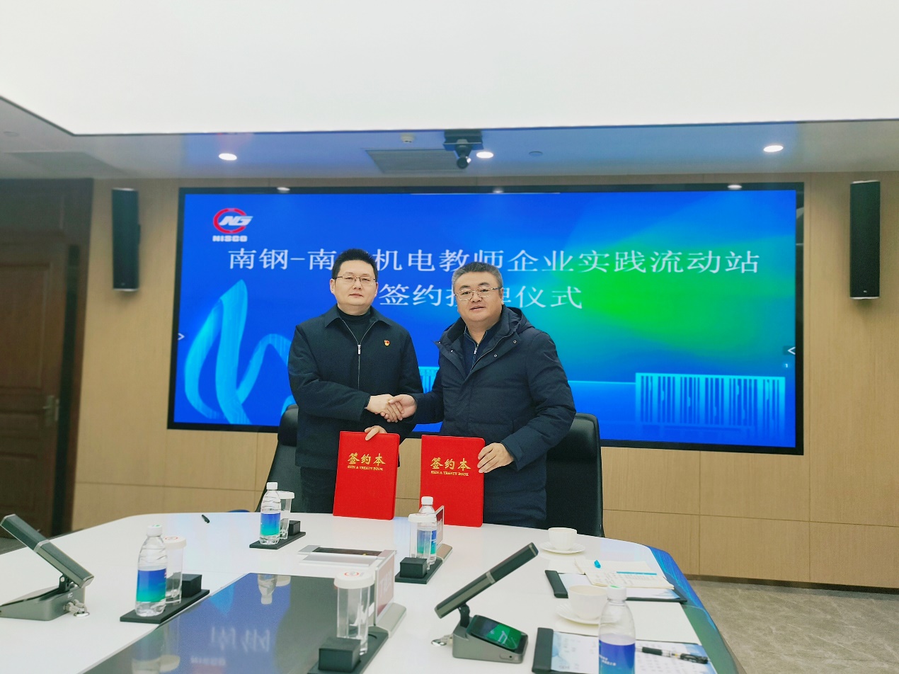 2024年3月6日上午,南京机电-南钢教师企业实践流动站签约授牌仪式在南京钢铁股份有限公司举行。南京钢铁股份有限公司人力资源部副部长孙斌,培训开发室主任仲崇波,规划配置室副主任王涛,学校党委委员、副校长刁爱军,科研及校企合作处处长李木香,机械工程系主任毛奇,高级督导潘理平等领导出席本次活动。南京机电-南钢教师企业实践流动站企业导师及进站教师参加了本次活动。本次签约授牌仪式为南京机电-南钢教师企业实践流动站建设与运行拉开了帷幕。