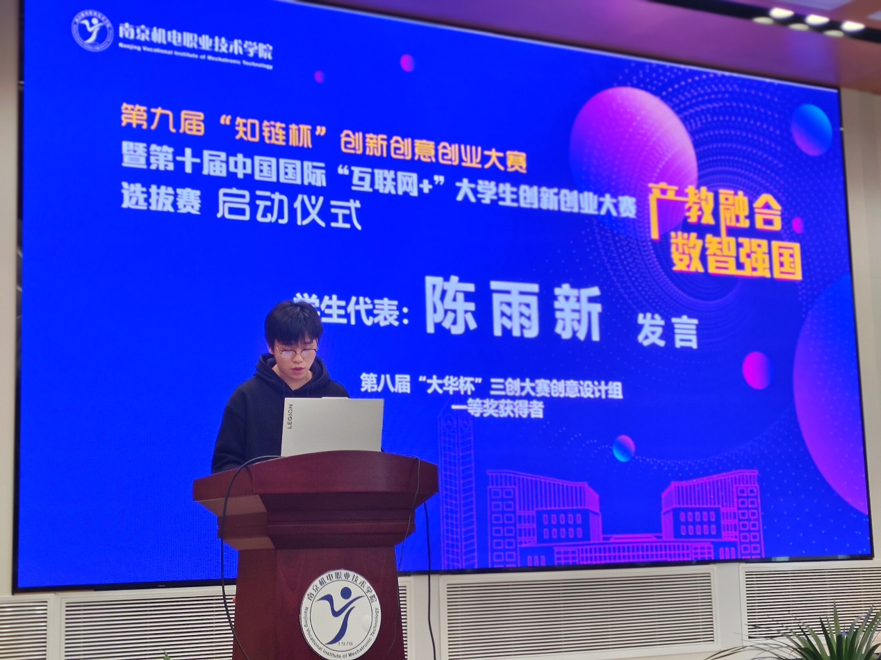2024年3月22日下午,江南网页版第九届“知链杯”创新创意创业大赛暨第十届中国国际“互联网+”大学生创新创业大赛校内选拔赛启动仪式在学校乐学楼报告厅举行。本届大赛由江南网页版主办,江苏知链科技有限公司冠名,并得到了南京高等职业教育创新创业园、南京高淳高新技术产业开发区管理办公室、南京市高淳区科学技术协会等协办单位的大力支持。
