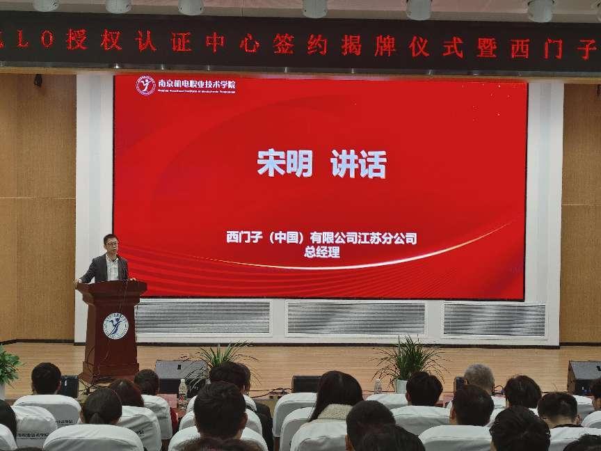 3月28日,江南网页版举行“西门子-南京机电L0授权认证中心签约揭牌仪式暨西门子L0教师认证结业仪式”,江苏省首家西门子L0授权认证中心落户学校。西门子(中国)有限公司江苏分公司总经理宋明,西门子创新与人才发展部市场拓展总监董丙武,技术研发总监袁海嵘,西门子(中国)有限公司南京办徐伟,学校党委委员、副校长刁爱军,科研及校企合作处处长李木香,自动化工程系主任张海红、副主任顾晟吉等领导出席本次活动。学校自动化工程系西门子首批L0认证教师和自动化工程系西门子L0认证首期100名学生参加本次活动。