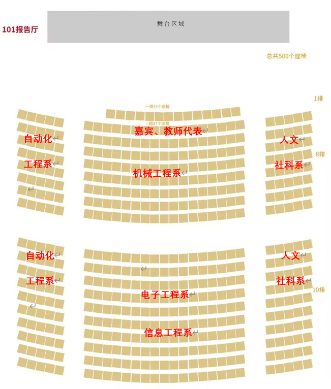 1. 以系部(支部)为单位组织入座(按示意图)