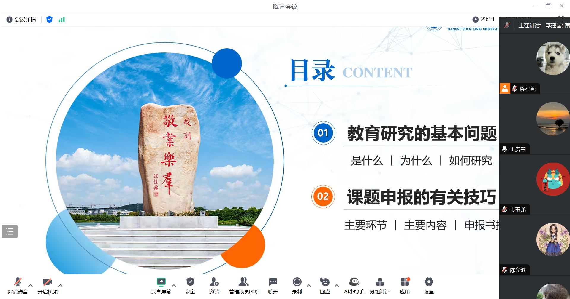 本次活动以如何做好社科类科研项目研究为主题,采用线上讲座与点评相结合的方式进行,申报2024年院级科研项目、有意向申报2025年社科类纵向科研项目的教师与部分新进教师参加了本次活动。