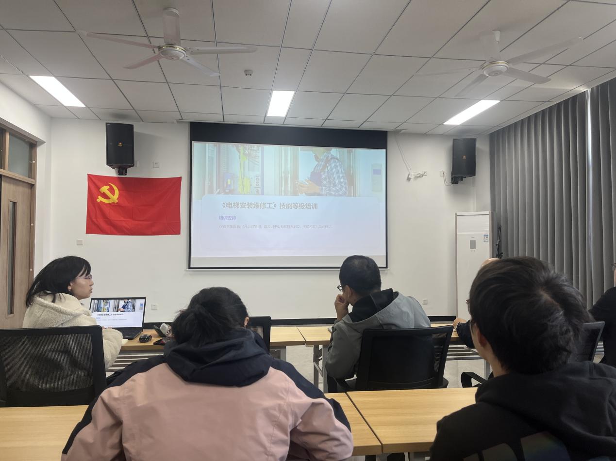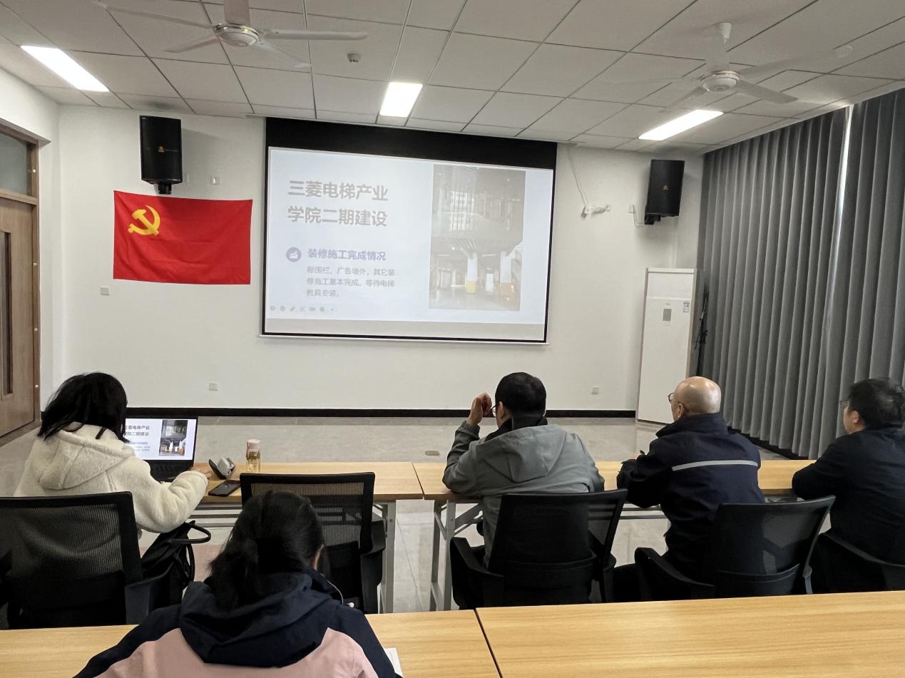 自动化工程系部领导及上海三菱电梯有限公司江苏分公司教务长秦勇泉就电梯产业学院建设的后续问题及《电梯安装维修工》技能等级培训展开了细致讨论。双方初步确定了12月份产业学院的培训计划以及23级电梯班的组班方案。