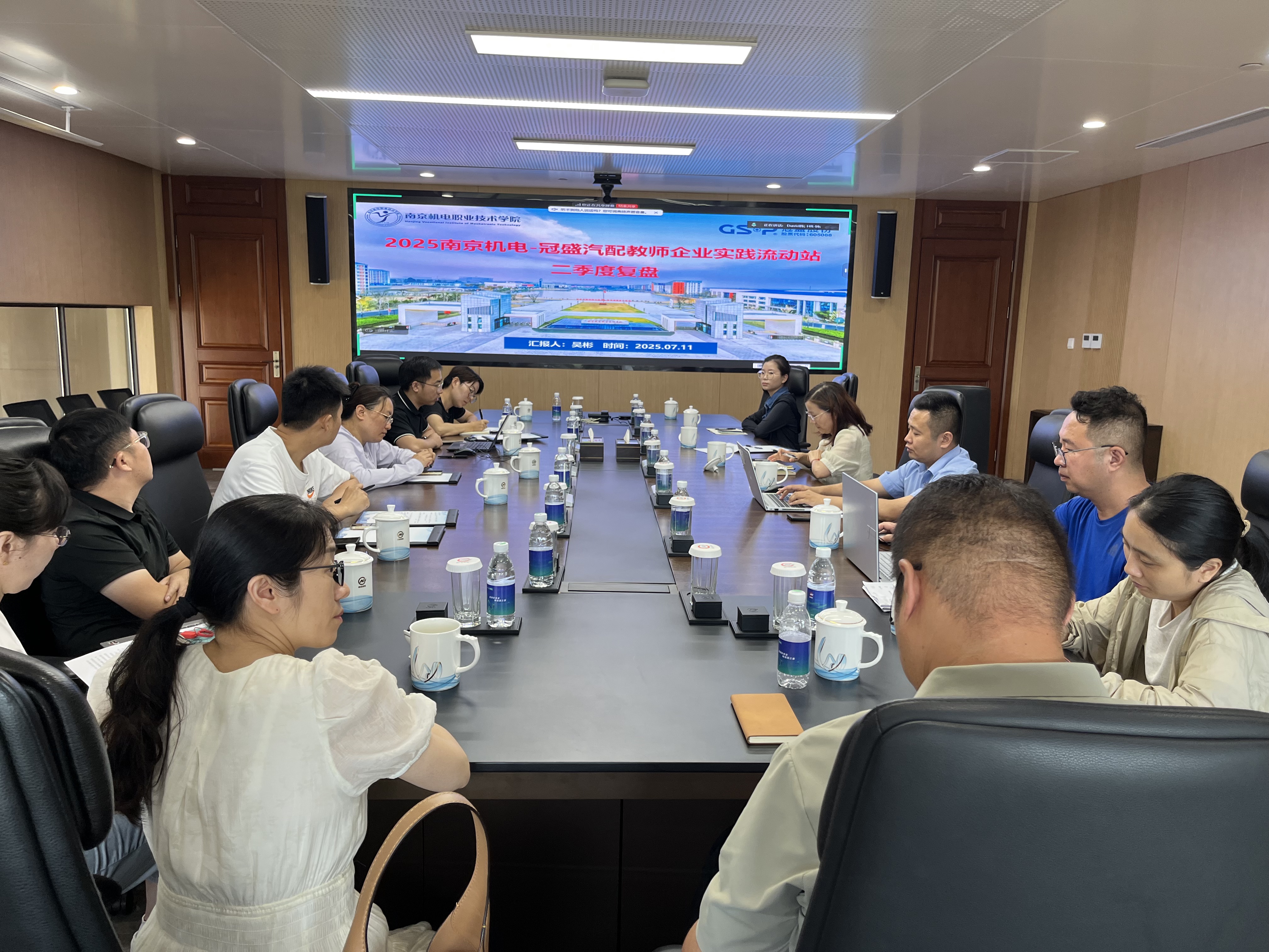 流动站相继作了第二季度复盘汇报。第二季度,南机电-南钢教师企业实践流动站开展现场工程师项目二期导师聘任、AI专利孵化专题培训、现场工程师班毕业答辩、现场工程师项目一期课程在线课程建设等实践任务;南机电-创维电器教师企业实践流动站开展创维UI设计项目、“创维1KG mini滚筒洗衣机”创新设计大赛、校企合作教材开发等实践任务;南机电-工艺装备党建共建教师企业实践流动站开展了订单式培养体系优化、劳模育人课堂、教学能力大赛企业导师指导、工装设计大赛与三创大赛推进等实践任务;南机电-冠盛汽配教师企业实践流动站持续推进激光打标装置工装夹具开发,并进行了驱动轴钟形壳球道中心高精密检具的对比法检测。企业导师对各自流动站第二季度实践情况作了点评,并发布了第三季度的实践计划。第三季度,四个流动站的教师团队将与企业导师共同推动校企党建共建,持续推进企业真实项目开发,持续开展人才培养、课程与教材共建等实践任务。